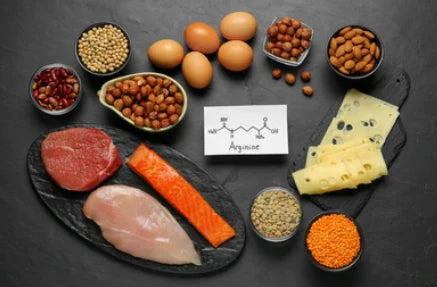 Arginine is an amino acid that is essential for the body during illness, trauma, and pregnancy. It helps your body produce nitric oxide which helps with blood flow regulation and cellular communication. It’s also necessary to produce white blood cells, which are essential for immune response. It can be found in poultry, meat, dairy, fish, and nuts.